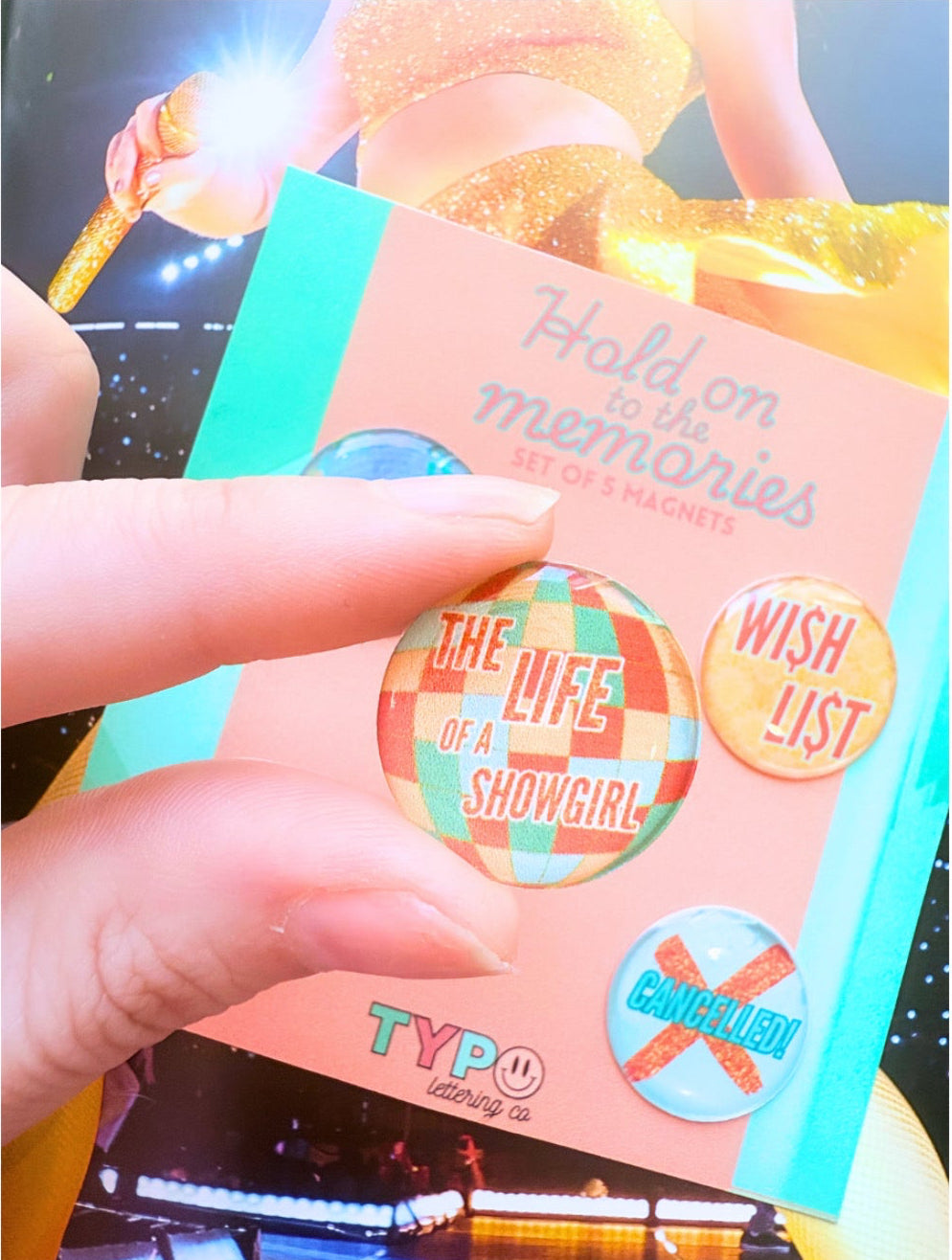 Magnets inspired by The Life of a Showgirl are here! Comes with the following 5 magnets: